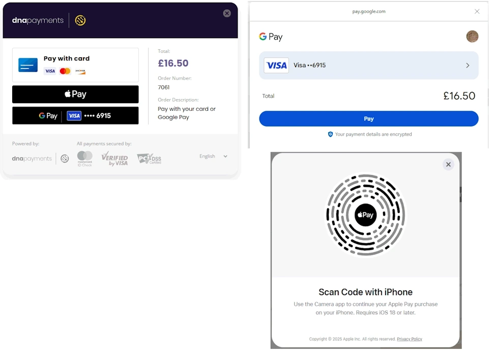 - Ensure popup windows are allowed in your browser to allow the Google Pay and Apple Pay windows to appear